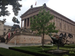 As I wander by foot and cycle around Berlin I am in awe of the architecture. Berlin itself is one huge inspiring city cathedral. Furthermore I am constantly reminded that all but 70 years ago, Berlin was like the ancient ruins of castles and cathedrals, razed to the ground by relentless allied bombing. Each building I stand before or meander through, has been loving and meticulously restored to its former glory! It is fantastic in the figurative and literal sense. Black and white pictures attest to the utter devastation and desolation of each building after the war.