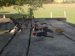 The most common bird is what I would call a red capped finch. These are so domesticated that hundreds of them hop around you at meal times on the tables. And will brazenly eat crumbs from plate whilst still eating yourself! ( that is terrible grammatically but you know what I mean!)